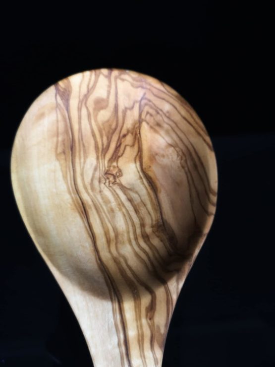 Mit der typischen Maserung von Olivenholz ist dieser Reislöffel/ Servierlöffel ein schöner Blickfang.