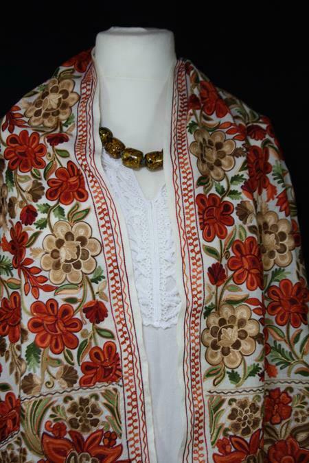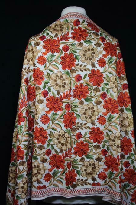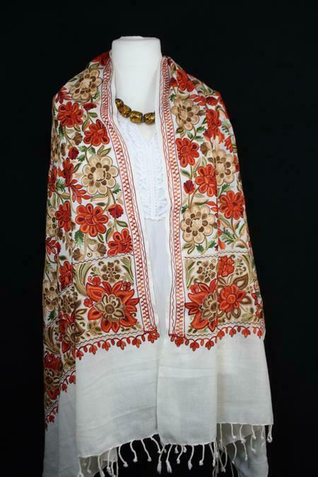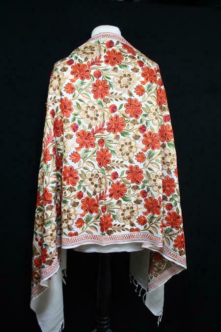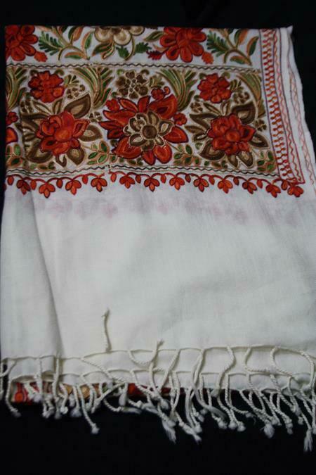Wunderschöner, farbenfroher Schal mit kunstvollen Stickereien.