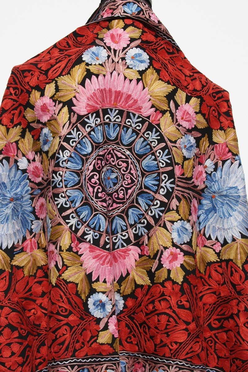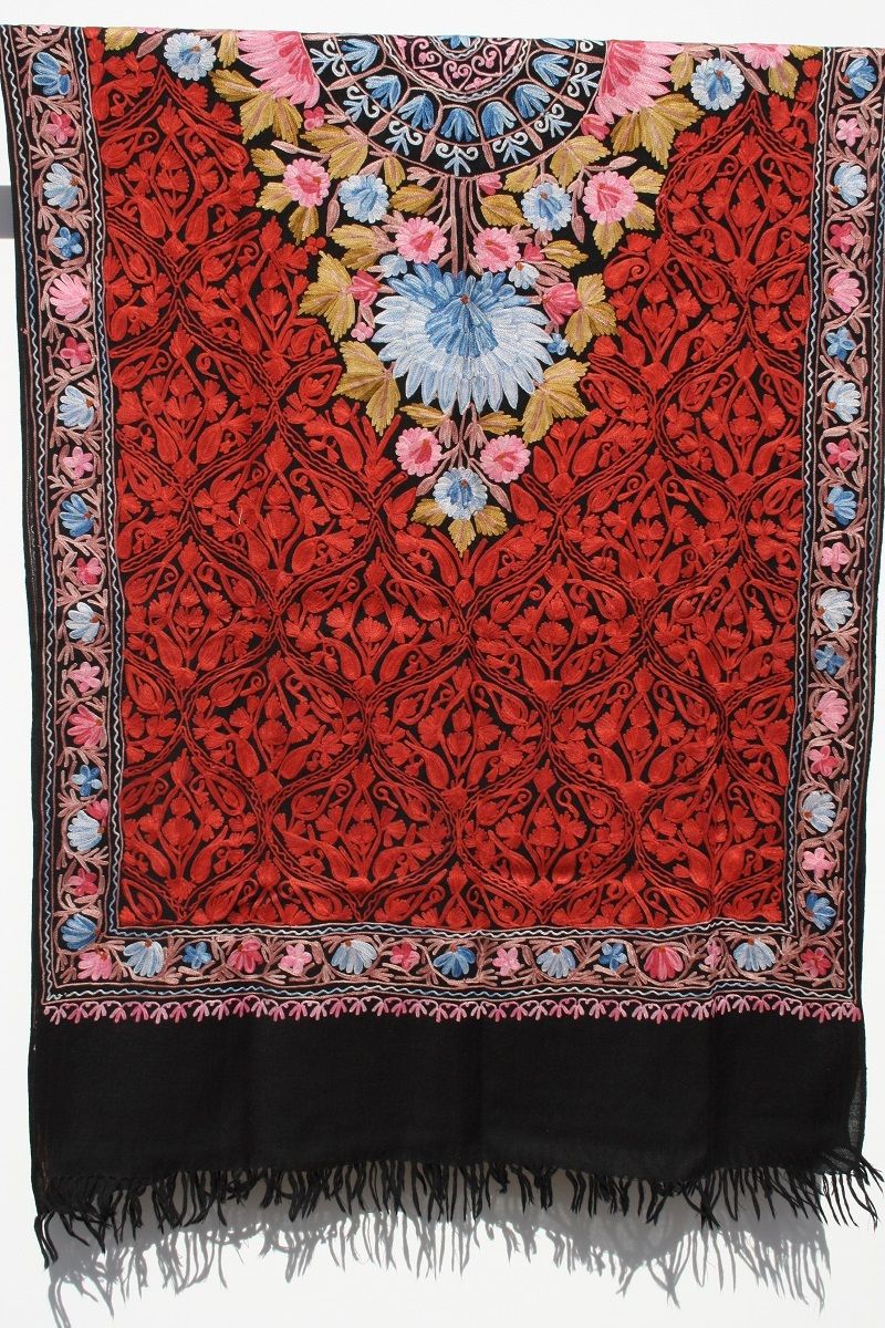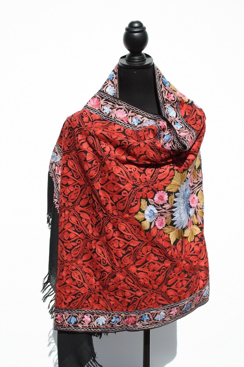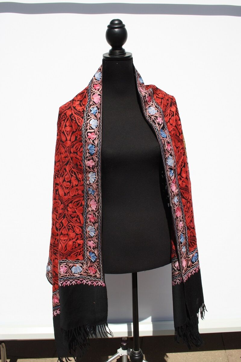 Wunderschöner, farbenfroher Schal mit kunstvollen Stickereien.