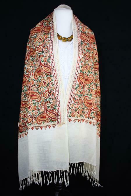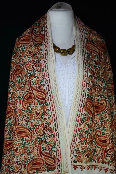 Wunderschöner, farbenfroher Schal mit kunstvollen Stickereien.