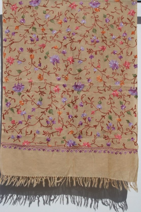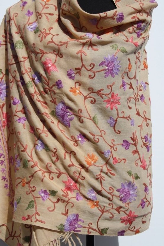 Jeder Schal ist teilweise bestickt und ein handgefertigtes Unikat, hergestellt in einem kleinen Familienbetrieb in Indien.